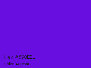 Hex #690ee1 Color is a normal violet color and the nearest color is Electric Indigo #6f00ff. Hex code #690ee1 and RGB value is rgb(105,14,225). In RGB color space, this color is composed of 41% red, 5% green, 88% blue, In CMYK color space, this color is composed of 53% cyan, 94% magenta, 0% yellow , 12% black , In HSL color space, this color has a hue angle of 266° , 88% saturation and 47% lightness.