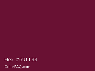 Hex #691133 Color is a dark rose color and the nearest color is Black Rose #67032d. Hex code #691133 and RGB value is rgb(105,17,51). In RGB color space, this color is composed of 41% red, 7% green, 20% blue, In CMYK color space, this color is composed of 0% cyan, 84% magenta, 51% yellow , 59% black , In HSL color space, this color has a hue angle of 337° , 72% saturation and 24% lightness.