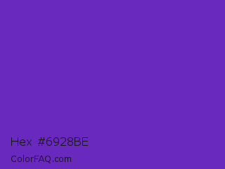 Hex #6928be Color is a normal violet color and the nearest color is Purple Heart Crayola #652dc1. Hex code #6928be and RGB value is rgb(105,40,190). In RGB color space, this color is composed of 41% red, 16% green, 75% blue, In CMYK color space, this color is composed of 45% cyan, 79% magenta, 0% yellow , 25% black , In HSL color space, this color has a hue angle of 266° , 65% saturation and 45% lightness.
