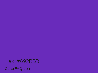 Hex #692bbb Color is a normal violet color and the nearest color is Purple Heart Crayola #652dc1. Hex code #692bbb and RGB value is rgb(105,43,187). In RGB color space, this color is composed of 41% red, 17% green, 73% blue, In CMYK color space, this color is composed of 44% cyan, 77% magenta, 0% yellow , 27% black , In HSL color space, this color has a hue angle of 266° , 63% saturation and 45% lightness.