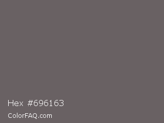 Hex #696163 Color is a normal red color and the nearest color is Scorpion #695f62. Hex code #696163 and RGB value is rgb(105,97,99). In RGB color space, this color is composed of 41% red, 38% green, 39% blue, In CMYK color space, this color is composed of 0% cyan, 8% magenta, 6% yellow , 59% black , In HSL color space, this color has a hue angle of 345° , 4% saturation and 40% lightness.