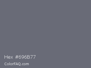 Hex #696b77 Color is a normal blue color and the nearest color is Nevada #646e75. Hex code #696b77 and RGB value is rgb(105,107,119). In RGB color space, this color is composed of 41% red, 42% green, 47% blue, In CMYK color space, this color is composed of 12% cyan, 10% magenta, 0% yellow , 53% black , In HSL color space, this color has a hue angle of 231° , 6% saturation and 44% lightness.