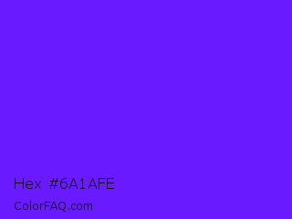 Hex #6a1afe Color is a normal violet color and the nearest color is Han Purple #5218fa. Hex code #6a1afe and RGB value is rgb(106,26,254). In RGB color space, this color is composed of 42% red, 10% green, 100% blue, In CMYK color space, this color is composed of 58% cyan, 90% magenta, 0% yellow , 0% black , In HSL color space, this color has a hue angle of 261° , 99% saturation and 55% lightness.