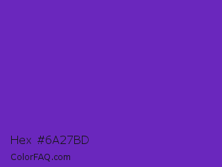 Hex #6a27bd Color is a normal violet color and the nearest color is Purple Heart Crayola #652dc1. Hex code #6a27bd and RGB value is rgb(106,39,189). In RGB color space, this color is composed of 42% red, 15% green, 74% blue, In CMYK color space, this color is composed of 44% cyan, 79% magenta, 0% yellow , 26% black , In HSL color space, this color has a hue angle of 267° , 66% saturation and 45% lightness.