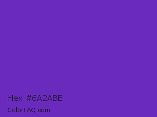 Hex #6a2abe Color is a normal violet color and the nearest color is Purple Heart Crayola #652dc1. Hex code #6a2abe and RGB value is rgb(106,42,190). In RGB color space, this color is composed of 42% red, 16% green, 75% blue, In CMYK color space, this color is composed of 44% cyan, 78% magenta, 0% yellow , 25% black , In HSL color space, this color has a hue angle of 266° , 64% saturation and 45% lightness.