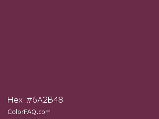 Hex #6a2b48 Color is a dark rose color and the nearest color is Tawny Port #692545. Hex code #6a2b48 and RGB value is rgb(106,43,72). In RGB color space, this color is composed of 42% red, 17% green, 28% blue, In CMYK color space, this color is composed of 0% cyan, 59% magenta, 32% yellow , 58% black , In HSL color space, this color has a hue angle of 332° , 42% saturation and 29% lightness.