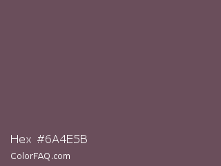 Hex #6a4e5b Color is a normal rose color and the nearest color is Zambezi #685558. Hex code #6a4e5b and RGB value is rgb(106,78,91). In RGB color space, this color is composed of 42% red, 31% green, 36% blue, In CMYK color space, this color is composed of 0% cyan, 26% magenta, 14% yellow , 58% black , In HSL color space, this color has a hue angle of 332° , 15% saturation and 36% lightness.