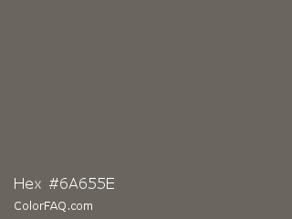 Hex #6a655e Color is a normal orange color and the nearest color is Ironside Gray #676662. Hex code #6a655e and RGB value is rgb(106,101,94). In RGB color space, this color is composed of 42% red, 40% green, 37% blue, In CMYK color space, this color is composed of 0% cyan, 5% magenta, 11% yellow , 58% black , In HSL color space, this color has a hue angle of 35° , 6% saturation and 39% lightness.
