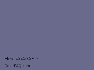 Hex #6a6a8d Color is a normal blue color and the nearest color is Dark Blue Gray #666699. Hex code #6a6a8d and RGB value is rgb(106,106,141). In RGB color space, this color is composed of 42% red, 42% green, 55% blue, In CMYK color space, this color is composed of 25% cyan, 25% magenta, 0% yellow , 45% black , In HSL color space, this color has a hue angle of 240° , 14% saturation and 48% lightness.