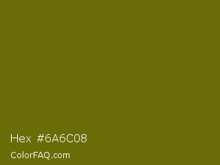 Hex #6a6c08 Color is a dark yellow color and the nearest color is Olivetone #716e10. Hex code #6a6c08 and RGB value is rgb(106,108,8). In RGB color space, this color is composed of 42% red, 42% green, 3% blue, In CMYK color space, this color is composed of 2% cyan, 0% magenta, 93% yellow , 58% black , In HSL color space, this color has a hue angle of 61° , 86% saturation and 23% lightness.