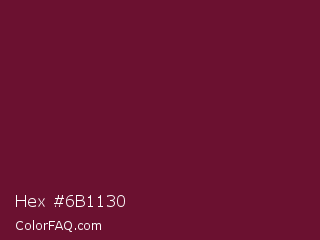 Hex #6b1130 Color is a dark rose color and the nearest color is Black Rose #67032d. Hex code #6b1130 and RGB value is rgb(107,17,48). In RGB color space, this color is composed of 42% red, 7% green, 19% blue, In CMYK color space, this color is composed of 0% cyan, 84% magenta, 55% yellow , 58% black , In HSL color space, this color has a hue angle of 339° , 73% saturation and 24% lightness.