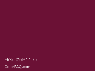 Hex #6b1135 Color is a dark rose color and the nearest color is Black Rose #67032d. Hex code #6b1135 and RGB value is rgb(107,17,53). In RGB color space, this color is composed of 42% red, 7% green, 21% blue, In CMYK color space, this color is composed of 0% cyan, 84% magenta, 50% yellow , 58% black , In HSL color space, this color has a hue angle of 336° , 73% saturation and 24% lightness.
