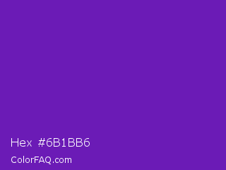 Hex #6b1bb6 Color is a normal purple color and the nearest color is Purple Heart Crayola #652dc1. Hex code #6b1bb6 and RGB value is rgb(107,27,182). In RGB color space, this color is composed of 42% red, 11% green, 71% blue, In CMYK color space, this color is composed of 41% cyan, 85% magenta, 0% yellow , 29% black , In HSL color space, this color has a hue angle of 271° , 74% saturation and 41% lightness.
