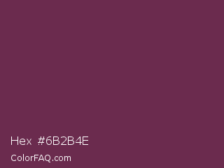 Hex #6b2b4e Color is a dark magenta color and the nearest color is Finn #692d54. Hex code #6b2b4e and RGB value is rgb(107,43,78). In RGB color space, this color is composed of 42% red, 17% green, 31% blue, In CMYK color space, this color is composed of 0% cyan, 60% magenta, 27% yellow , 58% black , In HSL color space, this color has a hue angle of 327° , 43% saturation and 29% lightness.