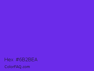 Hex #6b2bea Color is a normal indigo color and the nearest color is Blue Violet #8a2be2. Hex code #6b2bea and RGB value is rgb(107,43,234). In RGB color space, this color is composed of 42% red, 17% green, 92% blue, In CMYK color space, this color is composed of 54% cyan, 82% magenta, 0% yellow , 8% black , In HSL color space, this color has a hue angle of 260° , 82% saturation and 54% lightness.