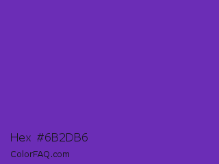 Hex #6b2db6 Color is a normal violet color and the nearest color is Purple Heart Crayola #652dc1. Hex code #6b2db6 and RGB value is rgb(107,45,182). In RGB color space, this color is composed of 42% red, 18% green, 71% blue, In CMYK color space, this color is composed of 41% cyan, 75% magenta, 0% yellow , 29% black , In HSL color space, this color has a hue angle of 267° , 60% saturation and 45% lightness.