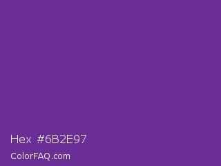 Hex #6b2e97 Color is a normal purple color and the nearest color is Rebecca Purple #663399. Hex code #6b2e97 and RGB value is rgb(107,46,151). In RGB color space, this color is composed of 42% red, 18% green, 59% blue, In CMYK color space, this color is composed of 29% cyan, 70% magenta, 0% yellow , 41% black , In HSL color space, this color has a hue angle of 275° , 53% saturation and 39% lightness.