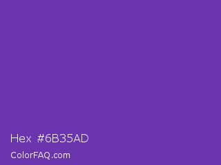 Hex #6b35ad Color is a normal violet color and the nearest color is Grape #6f2da8. Hex code #6b35ad and RGB value is rgb(107,53,173). In RGB color space, this color is composed of 42% red, 21% green, 68% blue, In CMYK color space, this color is composed of 38% cyan, 69% magenta, 0% yellow , 32% black , In HSL color space, this color has a hue angle of 267° , 53% saturation and 44% lightness.