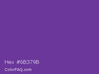 Hex #6b379b Color is a normal purple color and the nearest color is Purple Heart #69359c. Hex code #6b379b and RGB value is rgb(107,55,155). In RGB color space, this color is composed of 42% red, 22% green, 61% blue, In CMYK color space, this color is composed of 31% cyan, 65% magenta, 0% yellow , 39% black , In HSL color space, this color has a hue angle of 271° , 48% saturation and 41% lightness.