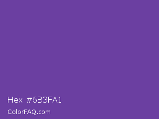Hex #6b3fa1 Color is a normal violet color and the nearest color is Royal Purple #6b3fa0. Hex code #6b3fa1 and RGB value is rgb(107,63,161). In RGB color space, this color is composed of 42% red, 25% green, 63% blue, In CMYK color space, this color is composed of 34% cyan, 61% magenta, 0% yellow , 37% black , In HSL color space, this color has a hue angle of 267° , 44% saturation and 44% lightness.