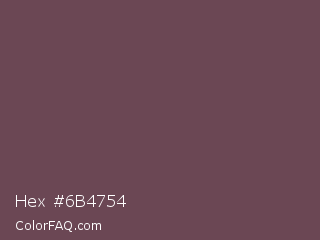 Hex #6b4754 Color is a normal rose color and the nearest color is Deep Tuscan Red #66424d. Hex code #6b4754 and RGB value is rgb(107,71,84). In RGB color space, this color is composed of 42% red, 28% green, 33% blue, In CMYK color space, this color is composed of 0% cyan, 34% magenta, 21% yellow , 58% black , In HSL color space, this color has a hue angle of 338° , 20% saturation and 35% lightness.
