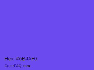 Hex #6b4af0 Color is a light indigo color and the nearest color is Majorelle Blue #6050dc. Hex code #6b4af0 and RGB value is rgb(107,74,240). In RGB color space, this color is composed of 42% red, 29% green, 94% blue, In CMYK color space, this color is composed of 55% cyan, 69% magenta, 0% yellow , 6% black , In HSL color space, this color has a hue angle of 252° , 85% saturation and 62% lightness.