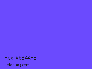 Hex #6b4afe Color is a light indigo color and the nearest color is Very Light Blue #6666ff. Hex code #6b4afe and RGB value is rgb(107,74,254). In RGB color space, this color is composed of 42% red, 29% green, 100% blue, In CMYK color space, this color is composed of 58% cyan, 71% magenta, 0% yellow , 0% black , In HSL color space, this color has a hue angle of 251° , 99% saturation and 64% lightness.