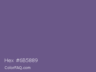 Hex #6b5889 Color is a normal violet color and the nearest color is Dark Lavender #734f96. Hex code #6b5889 and RGB value is rgb(107,88,137). In RGB color space, this color is composed of 42% red, 35% green, 54% blue, In CMYK color space, this color is composed of 22% cyan, 36% magenta, 0% yellow , 46% black , In HSL color space, this color has a hue angle of 263° , 22% saturation and 44% lightness.