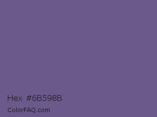 Hex #6b598b Color is a normal violet color and the nearest color is Dark Lavender #734f96. Hex code #6b598b and RGB value is rgb(107,89,139). In RGB color space, this color is composed of 42% red, 35% green, 55% blue, In CMYK color space, this color is composed of 23% cyan, 36% magenta, 0% yellow , 45% black , In HSL color space, this color has a hue angle of 262° , 22% saturation and 45% lightness.