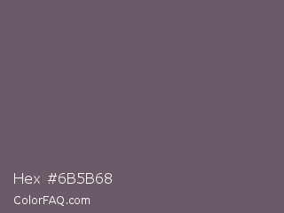 Hex #6b5b68 Color is a normal magenta color and the nearest color is Salt Box #685e6e. Hex code #6b5b68 and RGB value is rgb(107,91,104). In RGB color space, this color is composed of 42% red, 36% green, 41% blue, In CMYK color space, this color is composed of 0% cyan, 15% magenta, 3% yellow , 58% black , In HSL color space, this color has a hue angle of 311° , 8% saturation and 39% lightness.