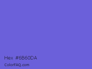 Hex #6b60da Color is a light indigo color and the nearest color is Slate Blue #6a5acd. Hex code #6b60da and RGB value is rgb(107,96,218). In RGB color space, this color is composed of 42% red, 38% green, 85% blue, In CMYK color space, this color is composed of 51% cyan, 56% magenta, 0% yellow , 15% black , In HSL color space, this color has a hue angle of 245° , 62% saturation and 62% lightness.