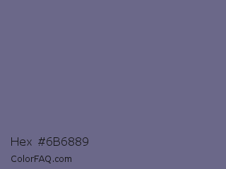 Hex #6b6889 Color is a normal indigo color and the nearest color is Storm Gray #717486. Hex code #6b6889 and RGB value is rgb(107,104,137). In RGB color space, this color is composed of 42% red, 41% green, 54% blue, In CMYK color space, this color is composed of 22% cyan, 24% magenta, 0% yellow , 46% black , In HSL color space, this color has a hue angle of 245° , 14% saturation and 47% lightness.