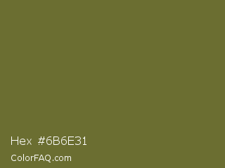 Hex #6b6e31 Color is a normal yellow color and the nearest color is Yellow Metal #716338. Hex code #6b6e31 and RGB value is rgb(107,110,49). In RGB color space, this color is composed of 42% red, 43% green, 19% blue, In CMYK color space, this color is composed of 3% cyan, 0% magenta, 55% yellow , 57% black , In HSL color space, this color has a hue angle of 63° , 38% saturation and 31% lightness.