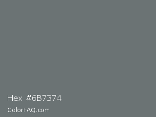 Hex #6b7374 Color is a normal cyan color and the nearest color is Nickel #727472. Hex code #6b7374 and RGB value is rgb(107,115,116). In RGB color space, this color is composed of 42% red, 45% green, 45% blue, In CMYK color space, this color is composed of 8% cyan, 1% magenta, 0% yellow , 55% black , In HSL color space, this color has a hue angle of 187° , 4% saturation and 44% lightness.