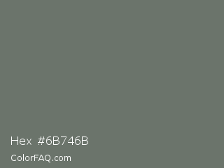 Hex #6b746b Color is a normal green color and the nearest color is Dove Gray #6d6c6c. Hex code #6b746b and RGB value is rgb(107,116,107). In RGB color space, this color is composed of 42% red, 45% green, 42% blue, In CMYK color space, this color is composed of 8% cyan, 0% magenta, 8% yellow , 55% black , In HSL color space, this color has a hue angle of 120° , 4% saturation and 44% lightness.