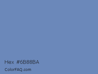 Hex #6b88ba Color is a normal blue color and the nearest color is Glaucous #6082b6. Hex code #6b88ba and RGB value is rgb(107,136,186). In RGB color space, this color is composed of 42% red, 53% green, 73% blue, In CMYK color space, this color is composed of 42% cyan, 27% magenta, 0% yellow , 27% black , In HSL color space, this color has a hue angle of 218° , 36% saturation and 57% lightness.