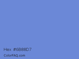 Hex #6b88d7 Color is a light blue color and the nearest color is Danube #6093d1. Hex code #6b88d7 and RGB value is rgb(107,136,215). In RGB color space, this color is composed of 42% red, 53% green, 84% blue, In CMYK color space, this color is composed of 50% cyan, 37% magenta, 0% yellow , 16% black , In HSL color space, this color has a hue angle of 224° , 57% saturation and 63% lightness.