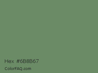 Hex #6b8b67 Color is a normal green color and the nearest color is Highland #6f8e63. Hex code #6b8b67 and RGB value is rgb(107,139,103). In RGB color space, this color is composed of 42% red, 55% green, 40% blue, In CMYK color space, this color is composed of 23% cyan, 0% magenta, 26% yellow , 45% black , In HSL color space, this color has a hue angle of 113° , 15% saturation and 47% lightness.