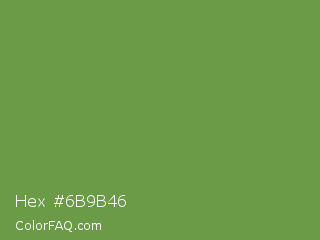 Hex #6b9b46 Color is a normal green color and the nearest color is Palm Leaf #6f9940. Hex code #6b9b46 and RGB value is rgb(107,155,70). In RGB color space, this color is composed of 42% red, 61% green, 27% blue, In CMYK color space, this color is composed of 31% cyan, 0% magenta, 55% yellow , 39% black , In HSL color space, this color has a hue angle of 94° , 38% saturation and 44% lightness.