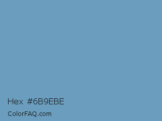 Hex #6b9ebe Color is a normal blue color and the nearest color is Cerulean Frost #6d9bc3. Hex code #6b9ebe and RGB value is rgb(107,158,190). In RGB color space, this color is composed of 42% red, 62% green, 75% blue, In CMYK color space, this color is composed of 44% cyan, 17% magenta, 0% yellow , 25% black , In HSL color space, this color has a hue angle of 203° , 39% saturation and 58% lightness.