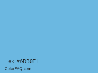 Hex #6bb8e1 Color is a light blue color and the nearest color is Aero #7cb9e8. Hex code #6bb8e1 and RGB value is rgb(107,184,225). In RGB color space, this color is composed of 42% red, 72% green, 88% blue, In CMYK color space, this color is composed of 52% cyan, 18% magenta, 0% yellow , 12% black , In HSL color space, this color has a hue angle of 201° , 66% saturation and 65% lightness.
