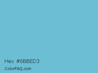 Hex #6bbed3 Color is a light cyan color and the nearest color is Viking #64ccdb. Hex code #6bbed3 and RGB value is rgb(107,190,211). In RGB color space, this color is composed of 42% red, 75% green, 83% blue, In CMYK color space, this color is composed of 49% cyan, 10% magenta, 0% yellow , 17% black , In HSL color space, this color has a hue angle of 192° , 54% saturation and 62% lightness.