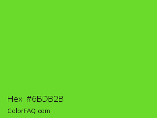 Hex #6bdb2b Color is a normal green color and the nearest color is Lima #76bd17. Hex code #6bdb2b and RGB value is rgb(107,219,43). In RGB color space, this color is composed of 42% red, 86% green, 17% blue, In CMYK color space, this color is composed of 51% cyan, 0% magenta, 80% yellow , 14% black , In HSL color space, this color has a hue angle of 98° , 71% saturation and 51% lightness.