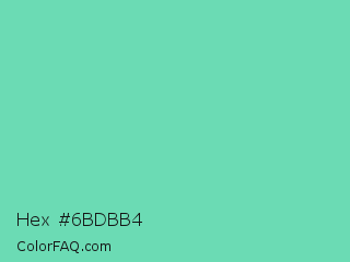 Hex #6bdbb4 Color is a light green color and the nearest color is Medium Aquamarine #66ddaa. Hex code #6bdbb4 and RGB value is rgb(107,219,180). In RGB color space, this color is composed of 42% red, 86% green, 71% blue, In CMYK color space, this color is composed of 51% cyan, 0% magenta, 18% yellow , 14% black , In HSL color space, this color has a hue angle of 159° , 61% saturation and 64% lightness.