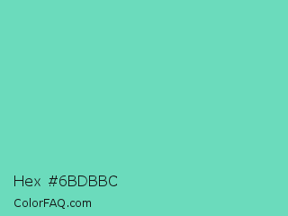 Hex #6bdbbc Color is a light green color and the nearest color is Downy #6fd0c5. Hex code #6bdbbc and RGB value is rgb(107,219,188). In RGB color space, this color is composed of 42% red, 86% green, 74% blue, In CMYK color space, this color is composed of 51% cyan, 0% magenta, 14% yellow , 14% black , In HSL color space, this color has a hue angle of 163° , 61% saturation and 64% lightness.