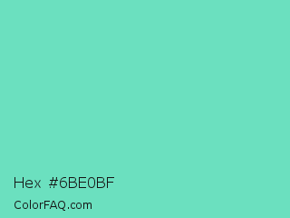 Hex #6be0bf Color is a light green color and the nearest color is Downy #6fd0c5. Hex code #6be0bf and RGB value is rgb(107,224,191). In RGB color space, this color is composed of 42% red, 88% green, 75% blue, In CMYK color space, this color is composed of 52% cyan, 0% magenta, 15% yellow , 12% black , In HSL color space, this color has a hue angle of 163° , 65% saturation and 65% lightness.