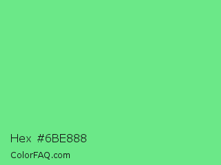 Hex #6be888 Color is a light green color and the nearest color is Very Light Malachite Green #64e986. Hex code #6be888 and RGB value is rgb(107,232,136). In RGB color space, this color is composed of 42% red, 91% green, 53% blue, In CMYK color space, this color is composed of 54% cyan, 0% magenta, 41% yellow , 9% black , In HSL color space, this color has a hue angle of 134° , 73% saturation and 66% lightness.