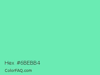 Hex #6bebb4 Color is a light green color and the nearest color is Medium Aquamarine #66ddaa. Hex code #6bebb4 and RGB value is rgb(107,235,180). In RGB color space, this color is composed of 42% red, 92% green, 71% blue, In CMYK color space, this color is composed of 54% cyan, 0% magenta, 23% yellow , 8% black , In HSL color space, this color has a hue angle of 154° , 76% saturation and 67% lightness.