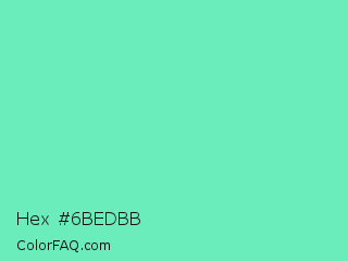 Hex #6bedbb Color is a light green color and the nearest color is Medium Aquamarine #66ddaa. Hex code #6bedbb and RGB value is rgb(107,237,187). In RGB color space, this color is composed of 42% red, 93% green, 73% blue, In CMYK color space, this color is composed of 55% cyan, 0% magenta, 21% yellow , 7% black , In HSL color space, this color has a hue angle of 157° , 78% saturation and 67% lightness.