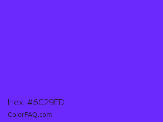 Hex #6c29fd Color is a normal indigo color and the nearest color is Han Purple #5218fa. Hex code #6c29fd and RGB value is rgb(108,41,253). In RGB color space, this color is composed of 42% red, 16% green, 99% blue, In CMYK color space, this color is composed of 57% cyan, 84% magenta, 0% yellow , 1% black , In HSL color space, this color has a hue angle of 259° , 98% saturation and 58% lightness.